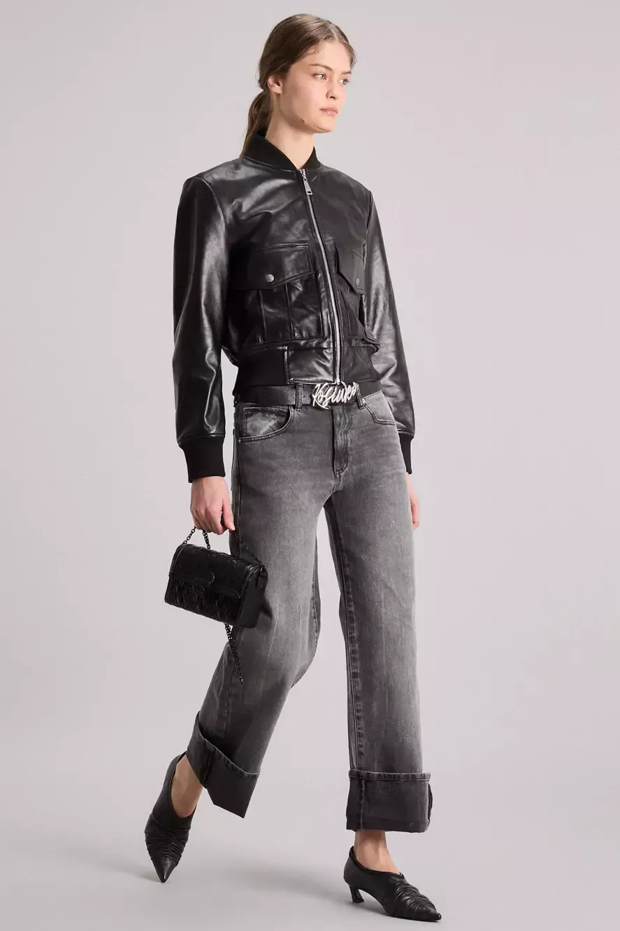 GOD SAVE “The Funky Jeans”! Jeans calce recto, tiro medio. Confeccionado en un tejido 100% algodón. Su proceso de lavado artesanal crea tonos ahumados con quebrados intencionales y bigotes, marcas localizadas en zonas de mayor desgaste de la prenda. Eva está usando en la prenda superior un talle S, y en la prenda inferior un talle S/26. Sus medidas son: Altura 1.78 m. Busto 78 cm. Cintura 57 cm. Cadera 86 cm.