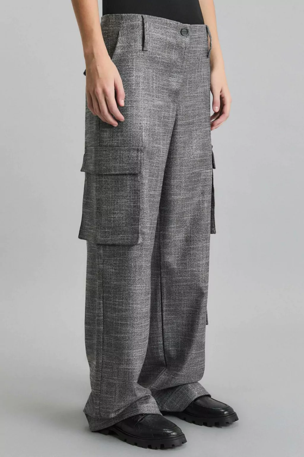 El pantalón Royal Hematite tiene calce regular con tiro alto y largo hasta el piso. Cuenta con bolsillos con tapa en laterales y espalda. Esta confeccionado en tela sastrera con lurex y forrería personalizada en bolsillos y vivos internos. Hace juego con la bomber Royal Hematite. Valen está usando en la prenda superior un talle S, y en la prenda inferior un talle S/26.